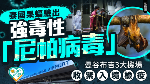 印度病毒|泰國果蝠驗出強毒性「尼帕病毒」 曼谷布吉3大機場收緊入境檢疫【附傳播途徑及感染徵狀】