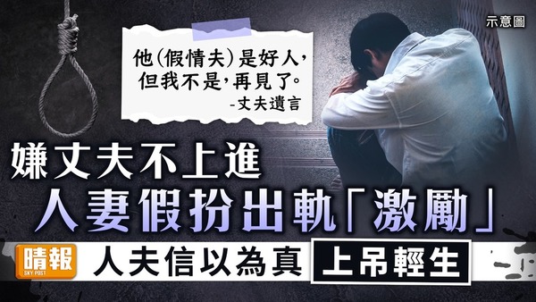 弄假成真|嫌丈夫不上進人妻假扮出軌「激勵」 人夫信以為真上吊輕生