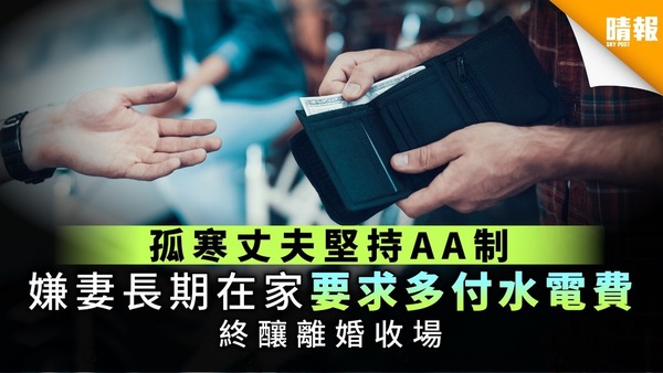 【婚後AA制】孤寒丈夫堅持AA制 嫌妻長期在家要求多付水電費 終釀離婚收場