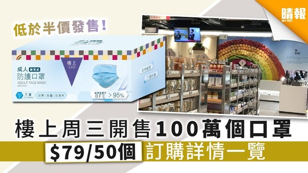 【買口罩】樓上周三開售100萬個口罩 $79/50個 訂購詳情一覽