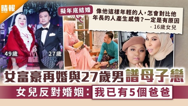 母子戀|女富豪再婚與27歲男譜母子戀 女兒反對婚姻:我已有5個爸爸