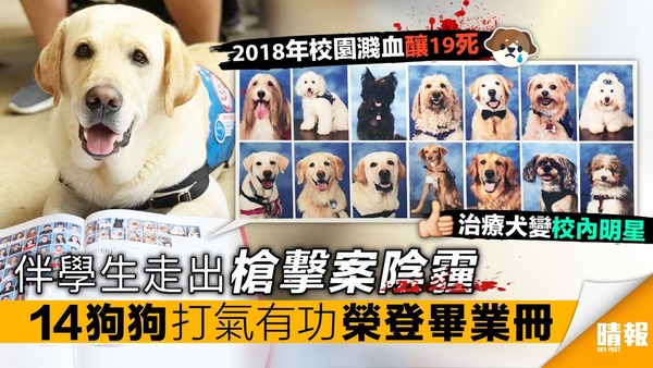 伴學生走出槍擊案陰霾 14狗狗打氣有功 榮登畢業冊