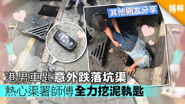 港男車匙意外跌落坑渠 熱心渠署師傅全力挖泥執匙