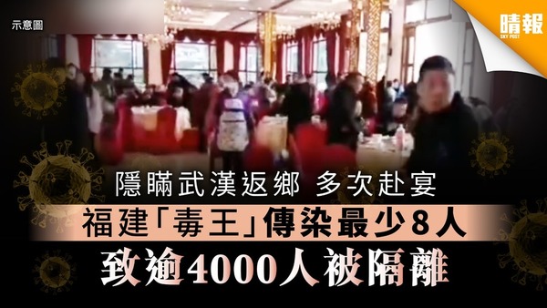 【武漢肺炎】隱瞞武漢返鄉 多次赴宴 福建「毒王」傳染最少8人 致逾4000人被隔離