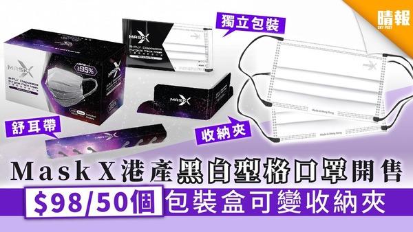 【買口罩】「Mask X」港產黑白型格口罩開售 $98/50個 包裝盒可變收納夾